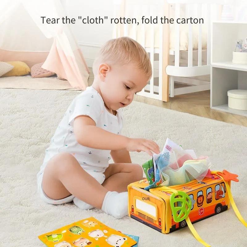 Maria Montessori Puzzle Tissue Box Toy - Baby Easy To Pull and Tear Toy Early Education Hand Grasping Learning Ability Trainer