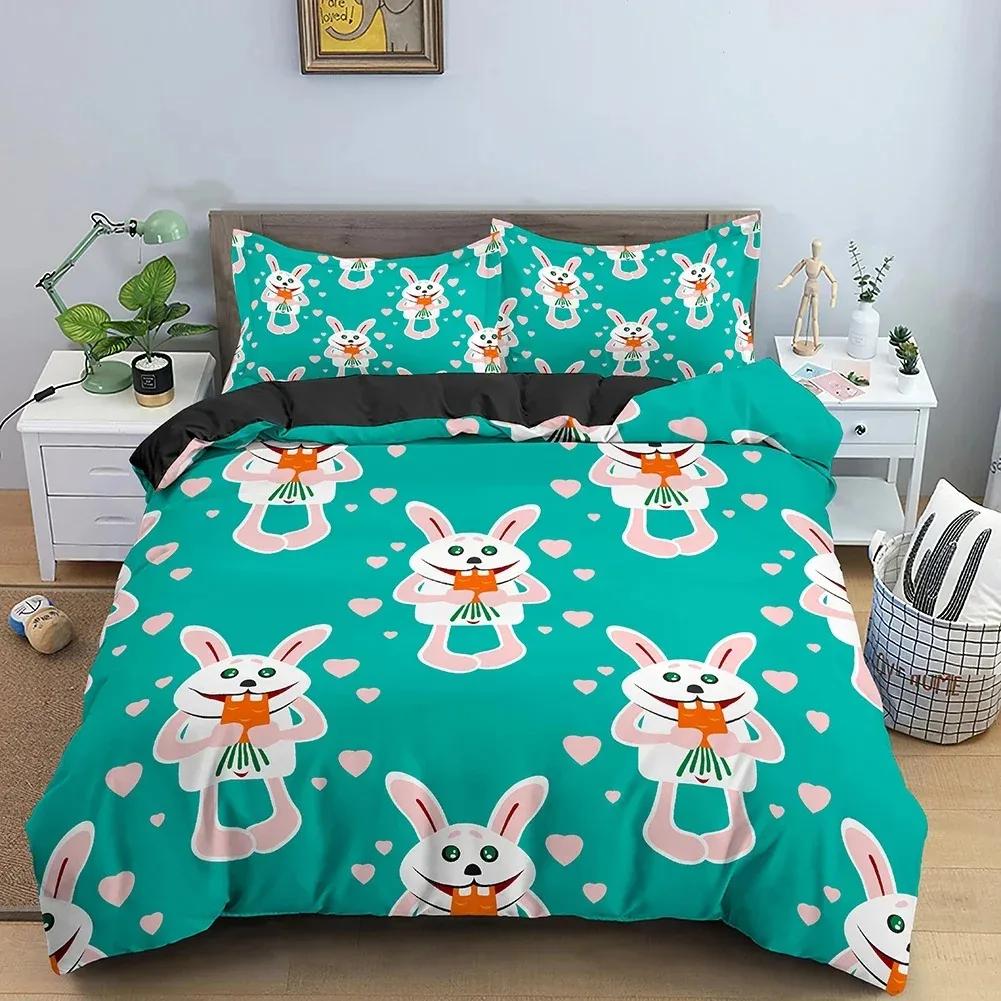 Top Cute Rabbit Print Bedding Set Cartoon Duvet Cover With Pillowcase Single Twin Queen King Size Quilt Cover No Bed Sheets