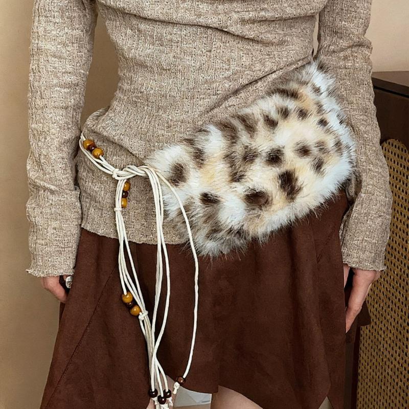 Y2K Leopard Furry Fur Belt Vintage Gothic Imitation Belts Sexy Hiphop Waistband Jeans Pants Decor Belt