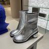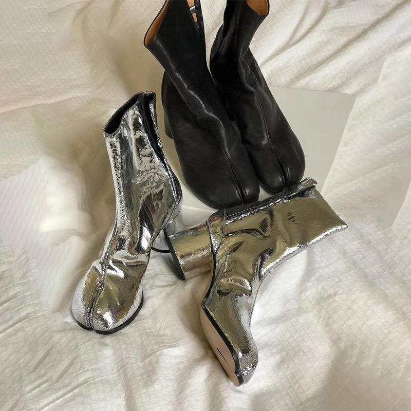 Sheepskin Version Pig's Trotters, Split-toed Boots Women's Shoes Niche Design Thick Heel High Heel Martin Boots Silver Fashion Short Boots