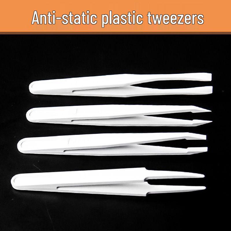 Anti-static Carbon Fiber Tweezers: White Flat, Bent, Pointed, Flat Nose & Round Nose Heads for Electronics