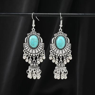Boho Antique Silver Dangle Earrings for Women Turquoise Design Tassel Earrings Ethnic Style Work Daily Wear Gifts Versatile