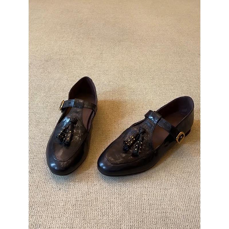 Sheepskin Version Fringed British Loafers Women's Round Head Rivets Shallow Mouth Single Shoes Women's Versatile Commuter Flat Mary Jane Shoes