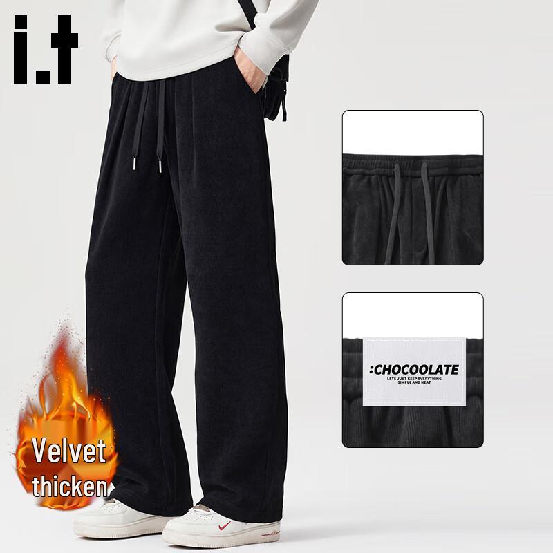 CHOCOOLATEit Men's Winter Corduroy Wide-Leg Curved Casual Pants