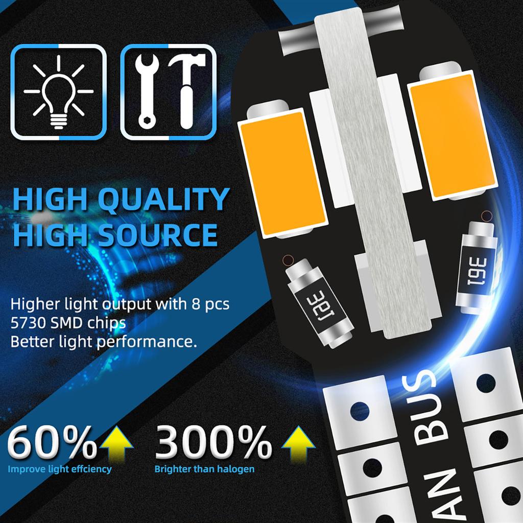 10/20PCS W5W T10 LED Bulbs Car Reading Light Clearance Lights 8SMD 12V 194 168 Side Wedge Light For Car License Light Warm White
