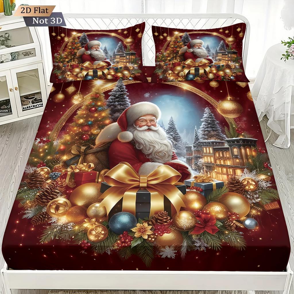 3pcs Merry ChristmasSanta Claus Print Coreless Bedsheet Set Various Sizes Bed Covers Bedroom Bedding Holiday Decorations