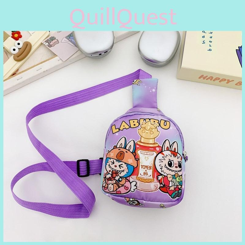 This cartoon children's chest bag features a lightweight, durable nylon construction with a polyester lining. Its playful anime and letter prints make it ideal for kindergarten-aged kids, supporting daily outings and school activities. Easy to clean with a damp cloth, it offers a fun, functional accessory for young children.