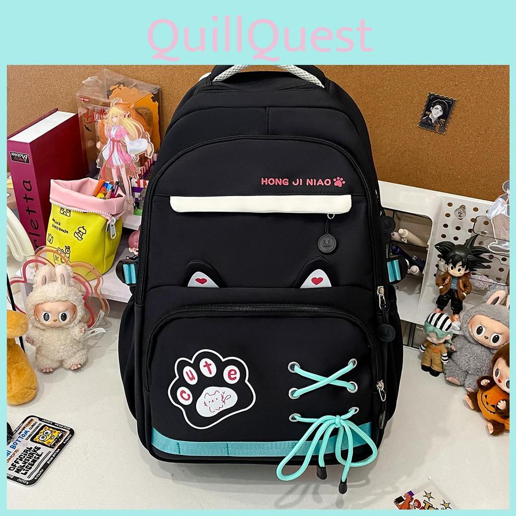 Large Capacity Simple Backpack With Letter Printing And Cat Ear Design For Daily