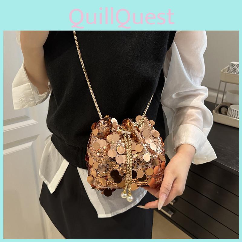 Sequins Fashion Design Women Single Shoulder Chain Bucket Bag Tassel With