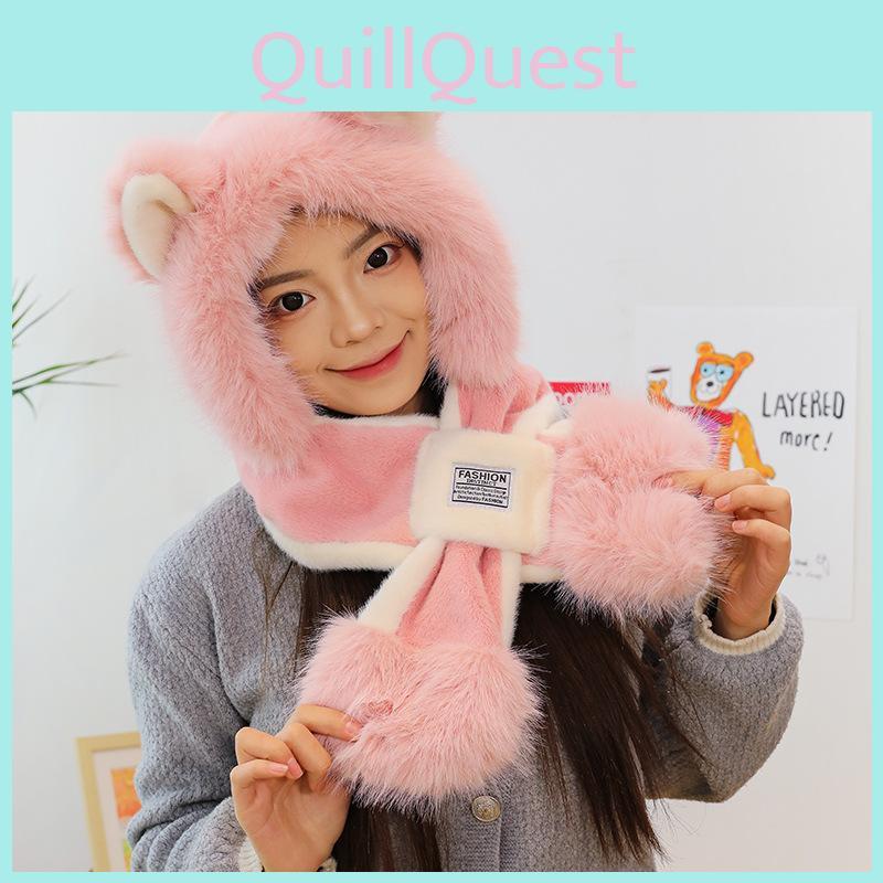 Plush Bear Stylish Winter Hat And Scarf For Men And Women Soft And Warm Design