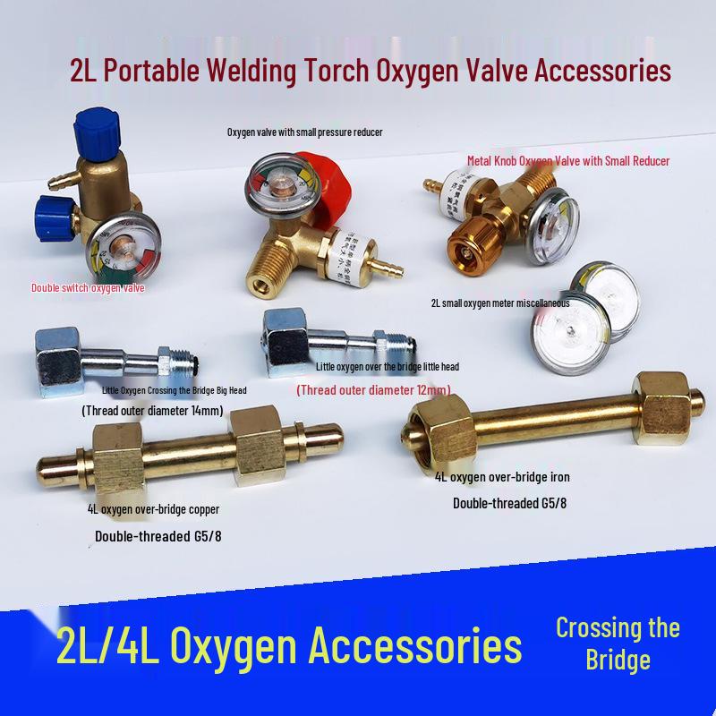 2L Portable Welding Torch Kit: Air Conditioning Accessories with Oxygen Meter, Valve, Bridge, 4L Oxygen Cylinder, and Inflation Tube.