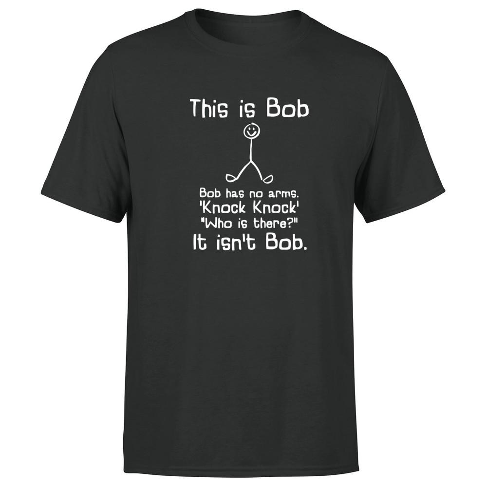 This Is Bob Mens T Shirt Humorous Bob Has No Arms Knock Knock Joke Tee Top