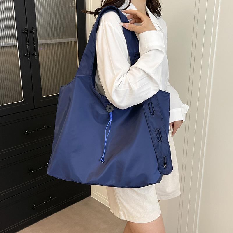 2025 Summer New Niche Design Fashion Simple Solid Color Foreign Gas Nylon Shoulder Portable Large Capacity Tote Bag