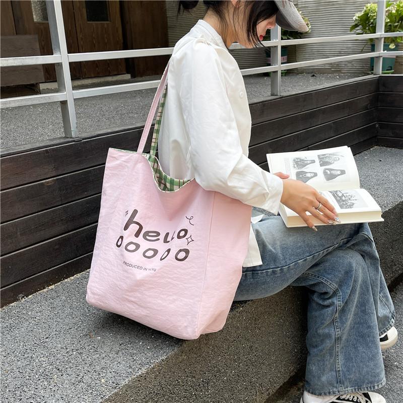 2025 New Large-capacity Canvas Bag Korean Lazy Style Double-sided Tote Bag Women's Fashion Texture Portable Commuter Bag