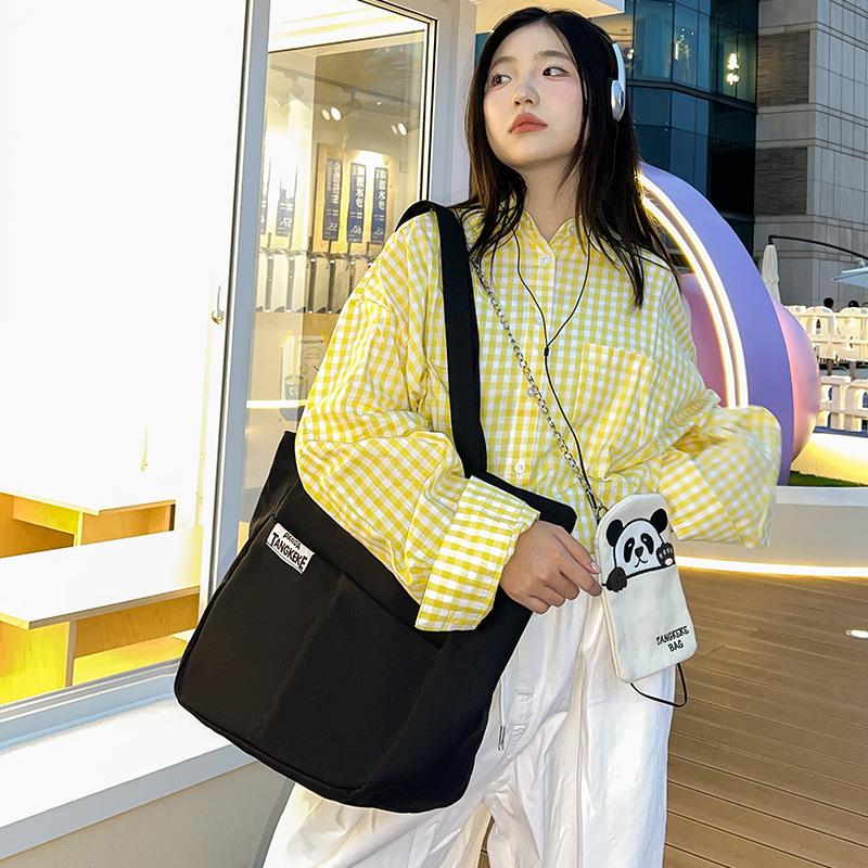 Canvas Bag Women's 2025 New Autumn Casual Cute Shoulder Bag Large Capacity Tote Bag Chain Messenger Bag