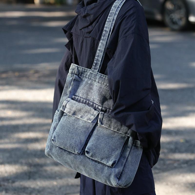 Retro Casual Japanese Denim Messenger Bag Men's Large-capacity Simple Shoulder Messenger Bag Female Student Class Bag