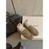 Cowhide Version~ Genuine Leather Retro Soft Waxy Women's Autumn and Winter New Round Head One-pedal Plush Beanie Shoes