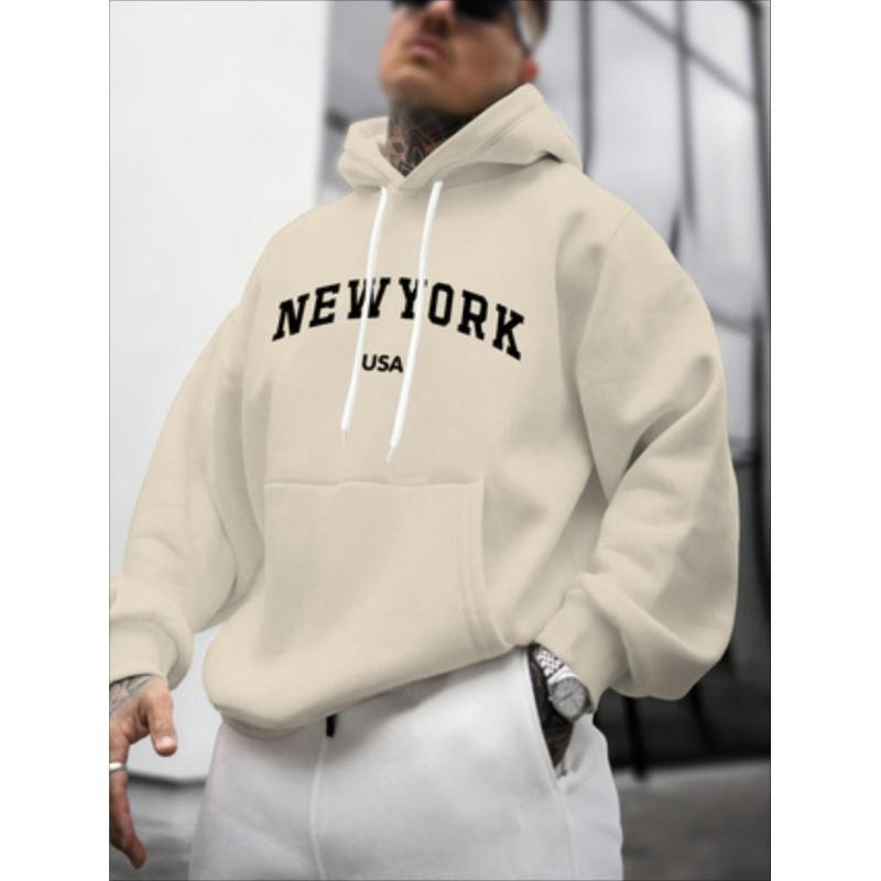 Apricot New York Letter Print Hoodie, a Stylish Weapon for American Retro Fashionistas On the Street