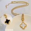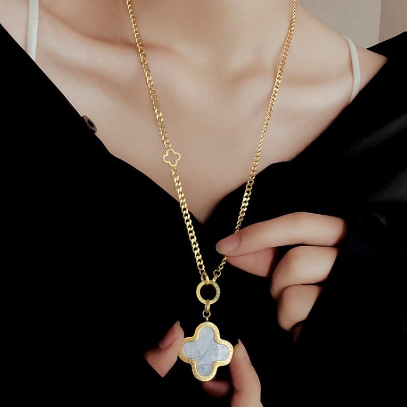 Stunning JMXD Titanium Steel Four Leaf Clover Pendant Sweater Chain Necklace High End Elegant Womens Fashion Jewelry Lucky Charm Gift Idea