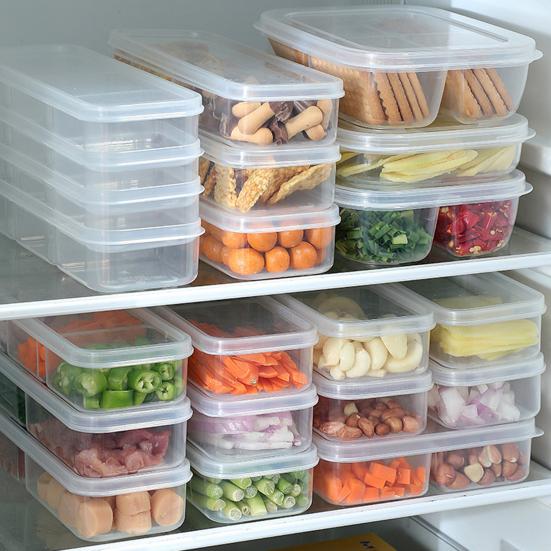 Keep your refrigerator organized and fresh with this refrigerator storage box. Featuring a compartmentalized design and a sealing lid, it effectively prevents odor transfer between foods. Its slender, stackable shape maximizes space efficiency, fitting seamlessly into any fridge while keeping your ingredients neatly arranged.
