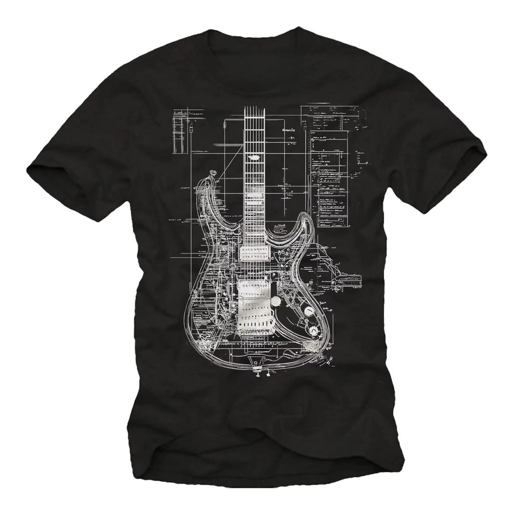 Gifts for Guitarists Men's T-shirt with Electric Guitar - Vintage Blue Print Motif Guitar Print for Men Short-sleeved Men's Tee