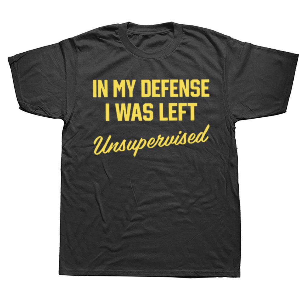In My Defense I Was Left Unsupervised T Shirt Retro Humor Quotes Y2k Mens Clothing Soft 100% Cotton Unisex Short Sleeves EU Size