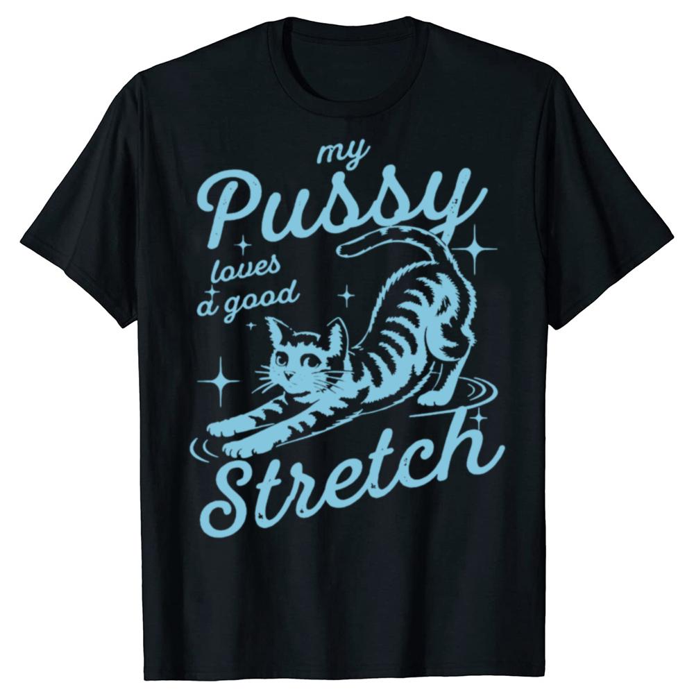 Funny My Pussy Loves A Good Stretch Inappropriate Adult Humor Cat T Shirts Men Tee Shirt Short Sleeve Unisex Loose Clothing