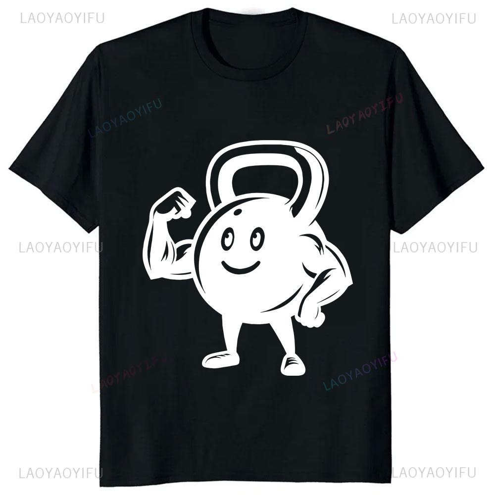Hot Sale GYM Kettlebell Graphic Cartoon Printed Man Tshirt Fashion Hip Hop Streetwear Casual Fitness Bodybuilding Gymnasium Tees