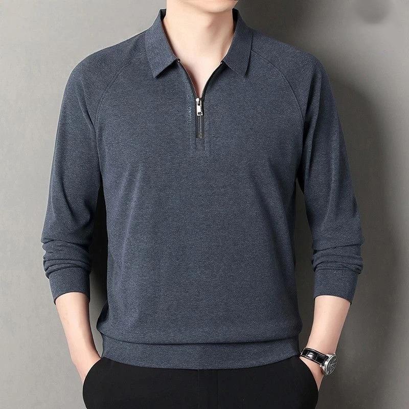 Spring Autumn Casual Men's Lapel Half-zip Long-sleeved T-shirt Business Polo Shirt Loose Autumn Knitted Sweater