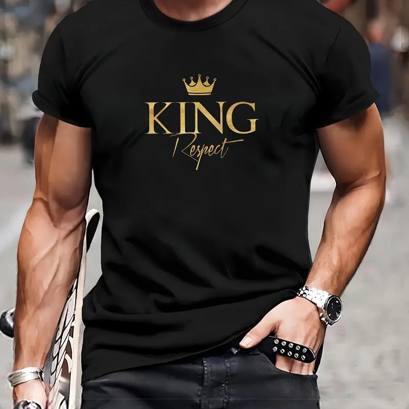King Respect Crown Print T-Shirt,Soft Breathable & Fade-Resistant, Classic Fit for Daily Casual Wear
