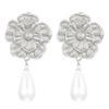 High-end Metal Flower Cold Wind Pearl Pendant Earrings Women's Niche Design Temperament Stud Earrings Wholesale