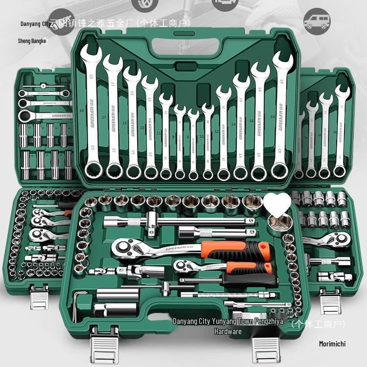 Green Forest Auto Repair Tool Set: Socket Wrench, Ratchet, Combination Tool Box.
