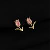 18K Gold Plated Clip-on Enamel Flower Earrings - Non-Pierced, High Color Retention
