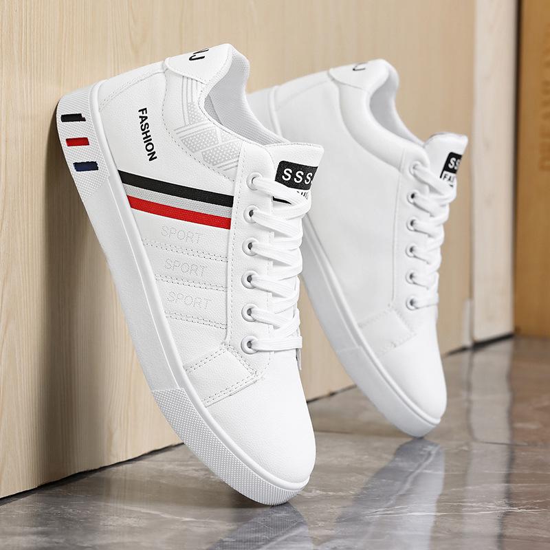 2024 Spring Men's Casual White Mid-High Skate Shoes, Extra Large Size, Trendy Breathable Sports Design