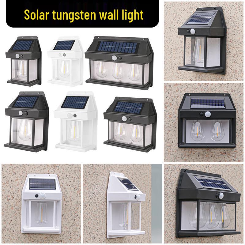 Solar Outdoor Wall Light with Human Body Sensor, Three Modes, Tungsten Filament, Waterproof for Garden or Villa Night Lighting.