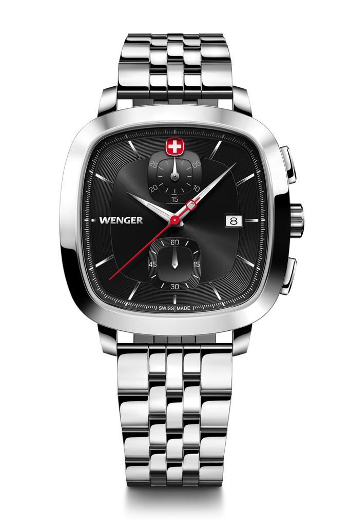 WENGER VINTAGE CLASSIC CHRONO Watch with Stainless Steel Case Black Silver Stainless Steel Quartz 50m Water Gift Idea Men's (316L), Dial, Bracelet,