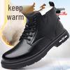 Men's High-Top Leather Martin Boots - British Style, Thick Sole, Velvet Lining, Winter Warmth