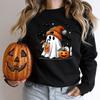 New Women's Sweatshirt Halloween Ghost Pumpkin Bat Print Round Neck Pullovers Ladies Autumn Winter Casual Halloween Sweatshirt