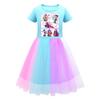 Kids Girls K-POP Rumi Zoey Mira Print Mesh Rainbow Round Neck Short Sleeves Casual Cotton Dress