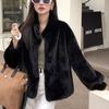 Women Thick Faux Mink Fur Loose Jackets Tops Winter Warm Stand Neck Single Breasted Abrigos Casual Korean Solid Coats Blusas New