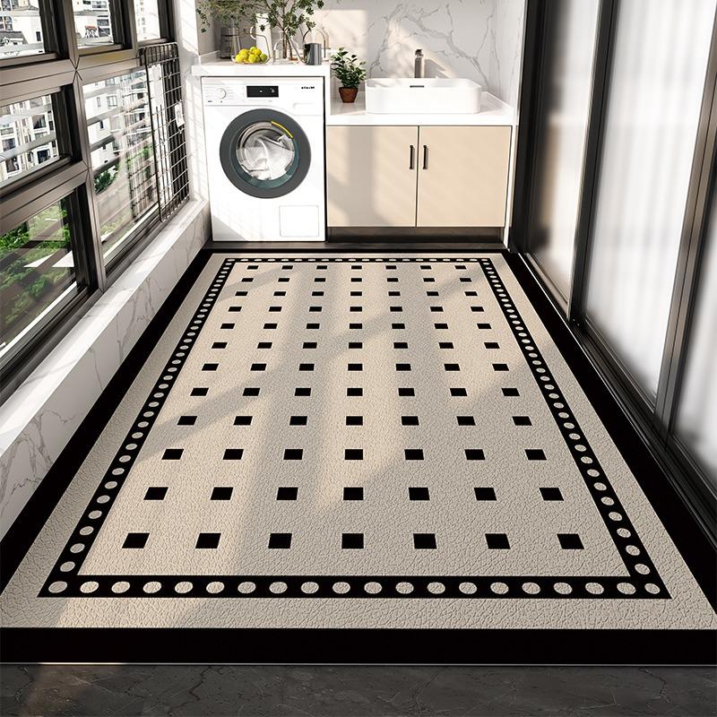 PVC Balcony Rug Waterproof Non-slip Leather Floor Mat Long Strip Large Area Carpet Black White Modern Art Style Decorative Rugs