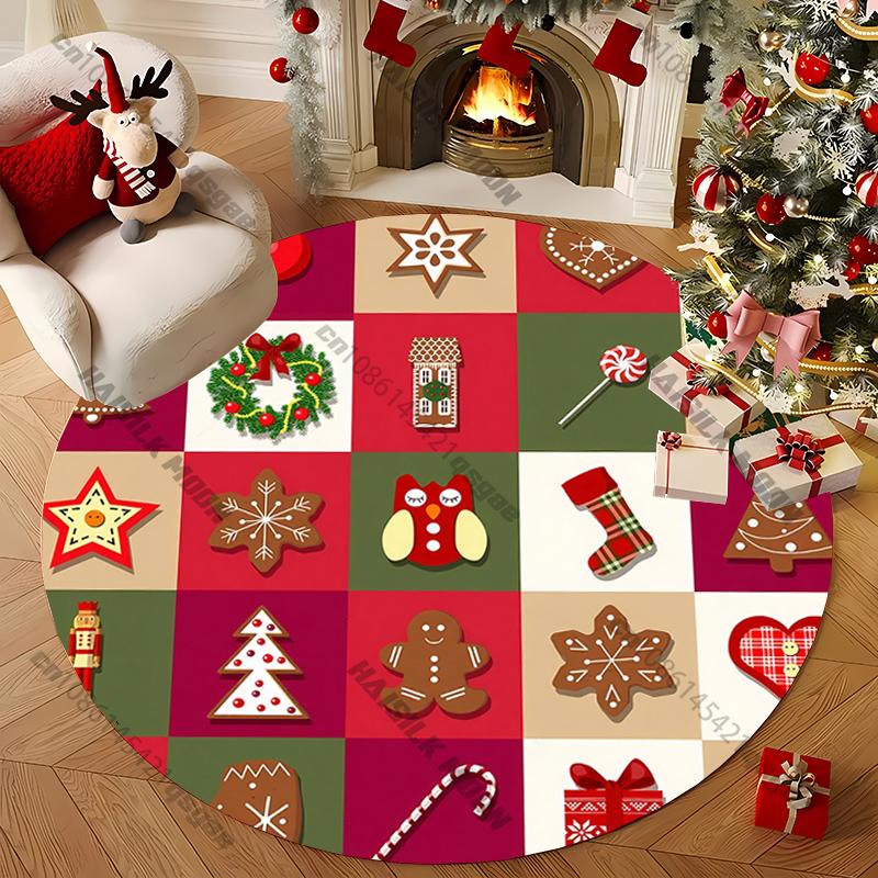 1PC New Christmas Round Non-Slip Carpet Kid's Play Mat Bedroom Living Room Sofa Christmas Decor Rug Warm Gift for Kids & Friends