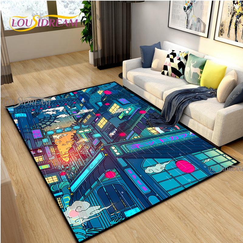 Japanese Anime Night Scene Rugs Child Game Floor Mat Alfombra Cartoon Carpets Modern Home Living Room Decor Washable Floor Rug