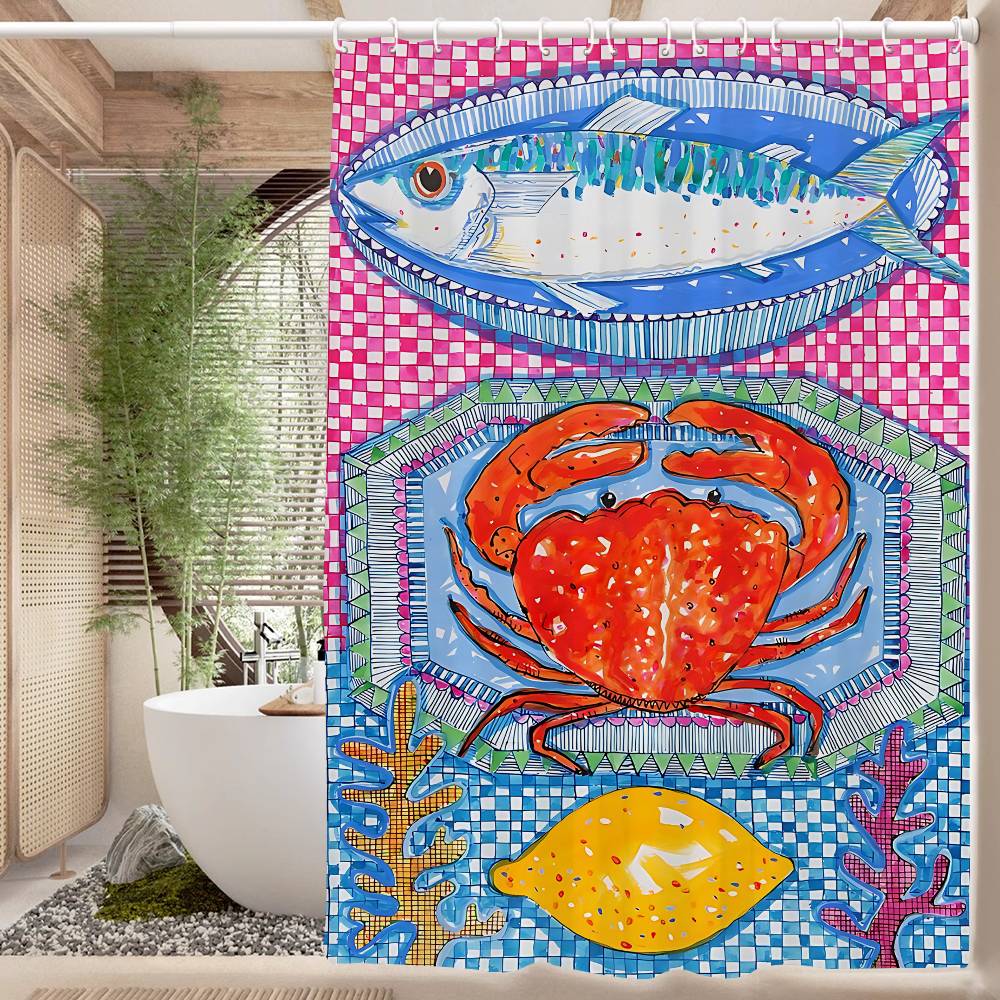 Colorful Sardine Lobster Fish Ocean Bathroom Curtain Classic Anime Fabric Shower Curtain With 12 Hooks Waterproof Bathroom Decor