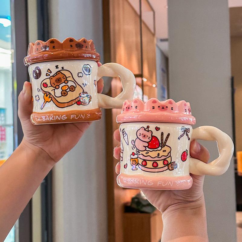 Milk Fufu Cute Cake Cat Mug with Lid Spoon Girls Household Ceramic Coffee Water Cup Birthday Gift