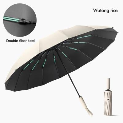 Windproof 16-Rib Large Solid Color Automatic Open Umbrella with Long Handle