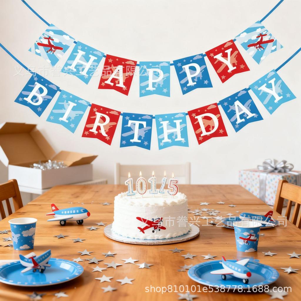 Spot Travel Party Flag Plane Racing Train Tractor Decoration Birthday Flag Party Decoration Banner