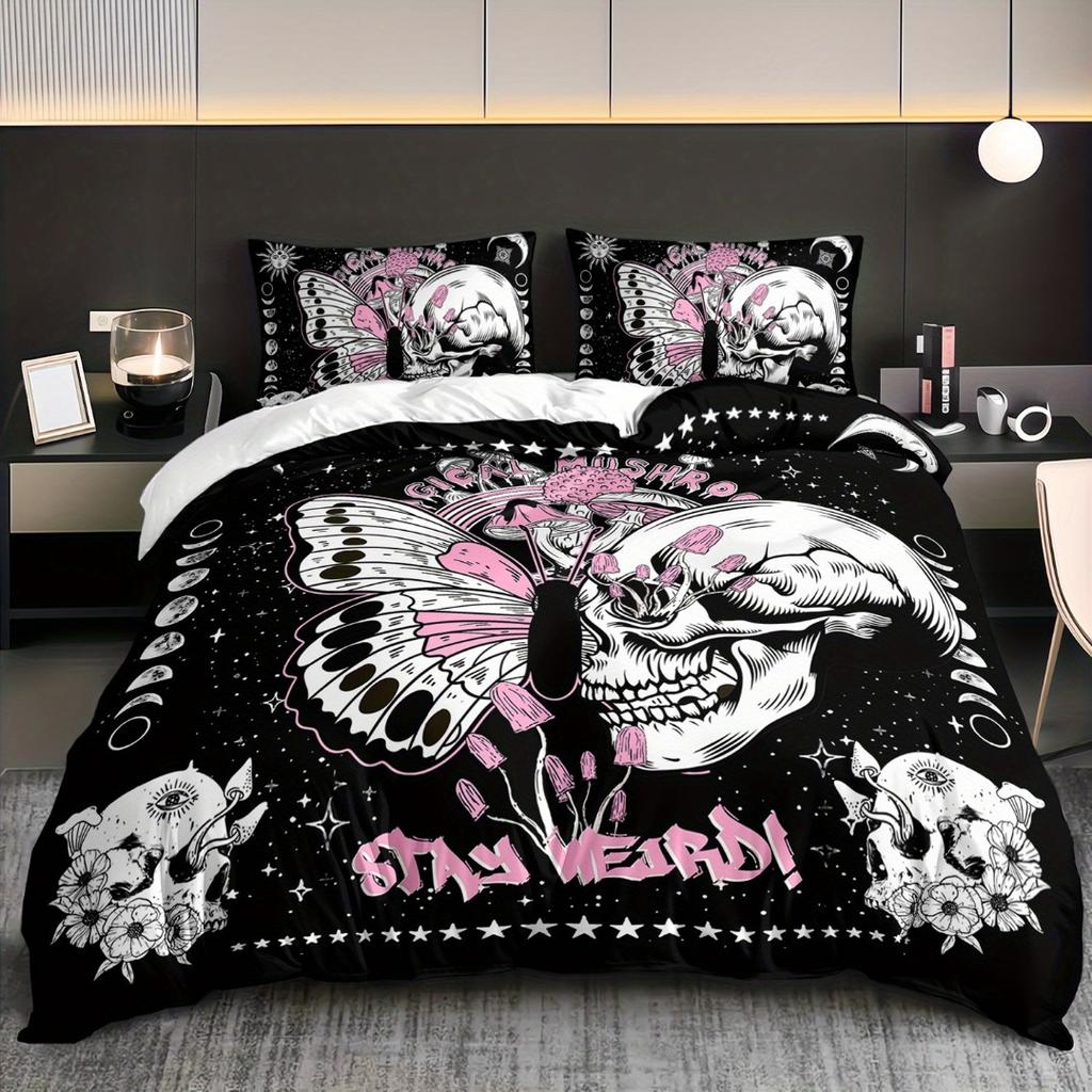 Skeleton Butterful 3D Printed Bedding Set Halloween Gothic Style Polyester Comfortable King Queen Twin Size For Birthday Gifts