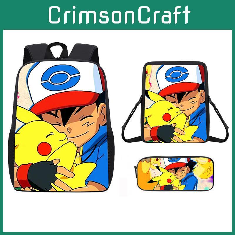 This Pikachu-themed school backpack set is crafted from durable Oxford cloth with a polyester lining,along with a matching shoulder bag and pencil case. Its breathable, waterproof, and abrasion-resistant features support daily use. Ideal for outdoor training or school activities, it includes air-cushion straps for comfort. Wipe clean with a damp cloth to maintain its vibrant cartoon print and stitched details.
