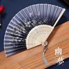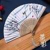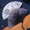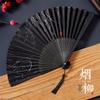 Ancient Chinese Style Black Bamboo Folding Fan for Women's Hanfu Dance Costume